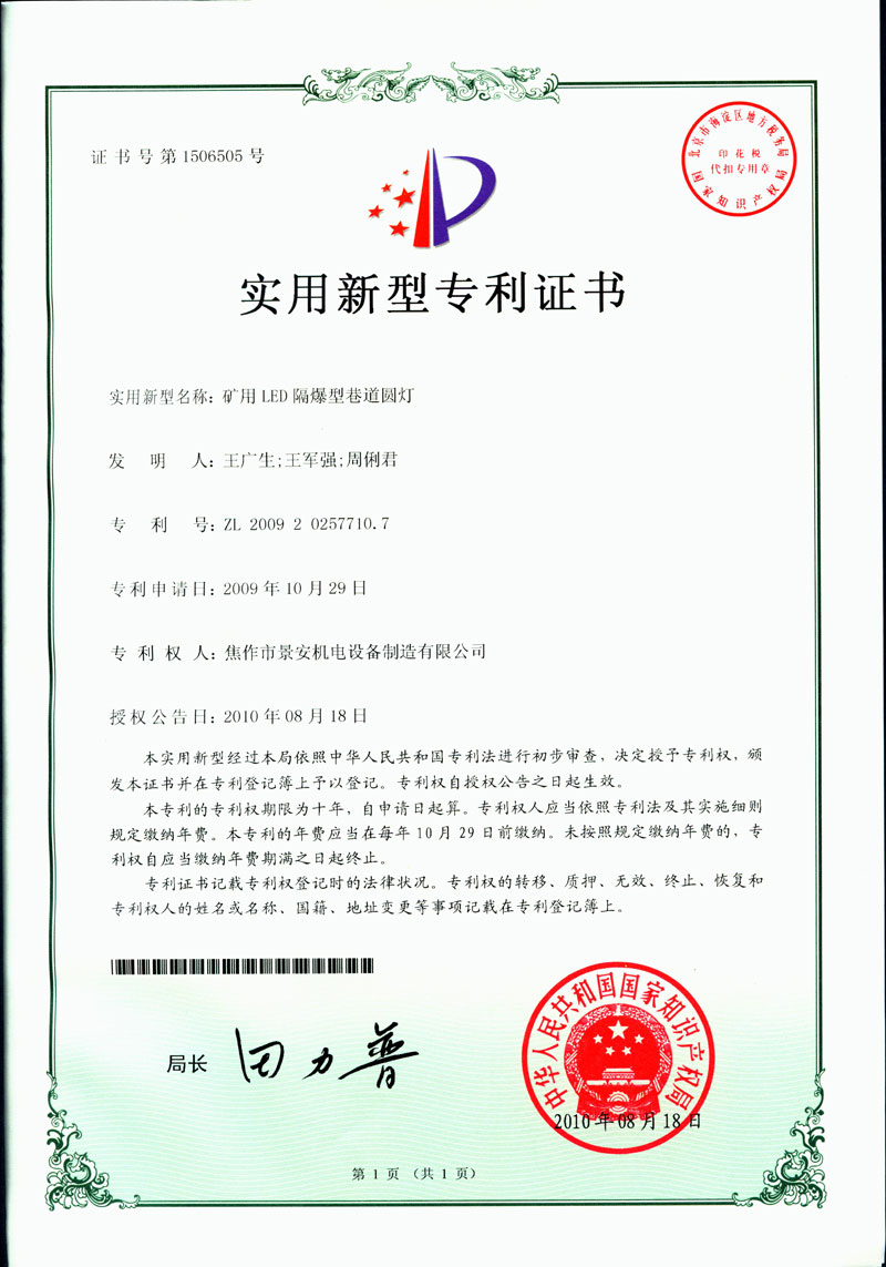 焦作景安公司始終堅持“以科技為先導,以市場為導向”的發(fā)展戰(zhàn)略,不斷進行新產品的研制和開發(fā),在國家“六五”到“九五”期間,承擔和參與了國家多項科技攻關項目。并被中國電器工業(yè)協會評定為“質量可信產品”。特別是在礦用防爆燈領域,礦用隔爆型半導體(LED)照明燈具,2008年列入國家火炬計劃,獲2009年河南省工業(yè)和信息化廳的科技成果二等獎,并擁有多項國家專利。 |